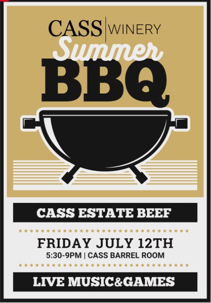 1. Cass Winery Summer BBQ (Paso Robles) July 12th Doors Open 5:30. 🍷Enjoy a summer BBQ where we'll be enjoying some CASS Estate raised beef barbecue, wine & beer, and live music!